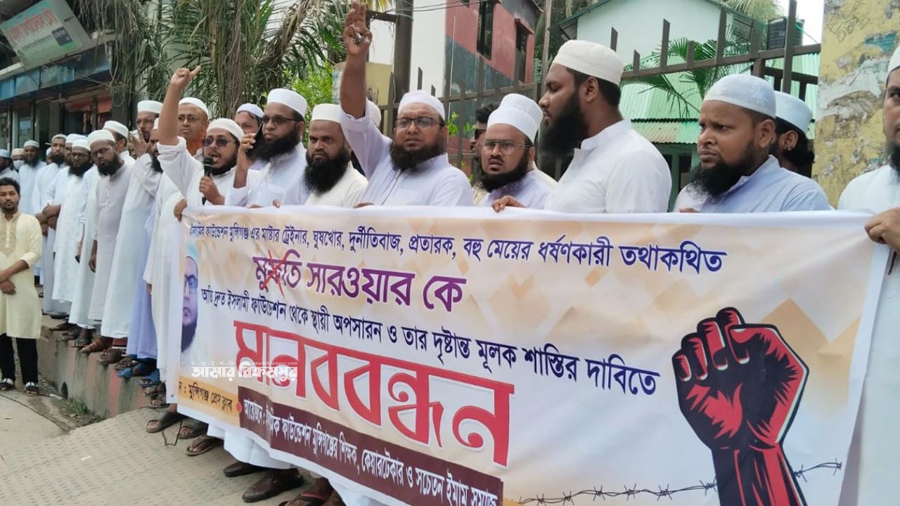 মুন্সিগঞ্জ ইসলামিক ফাউন্ডেশনের ট্রেইনার সরওয়ারের বিরুদ্ধে নানা অভিযোগে মানবববন্ধন